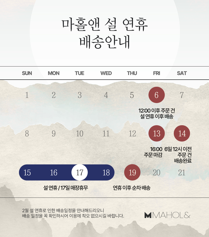 사업자번호 : 589-82-00120 | 통신판매업신고 : 제2019-경기포천- 0413호 | 개인정보관리책임자 : 임계종 l E-MAIL : matt.kim@maholn.com