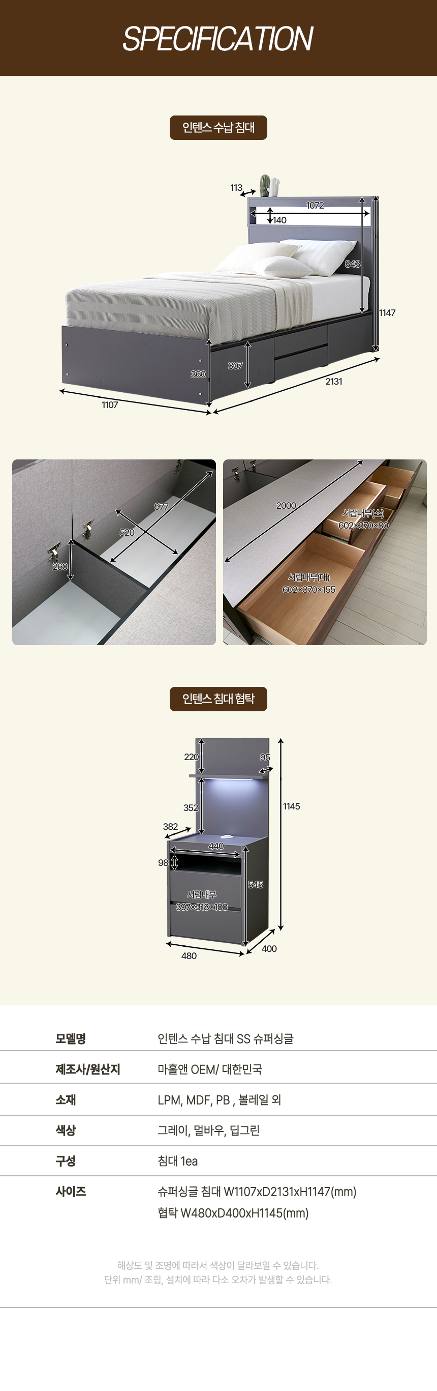 마홀앤 인텐스 2단 수납침대 침대프레임 모던 SS 슈퍼싱글