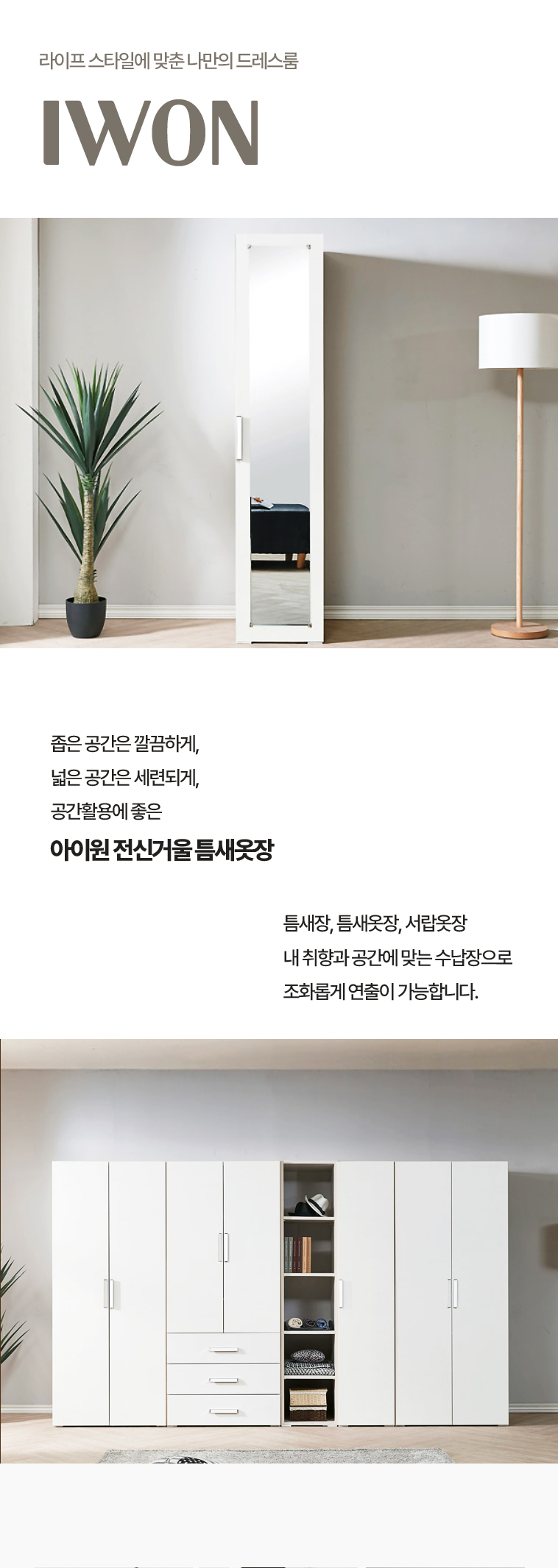 아이원 407 전신거울 틈새옷장