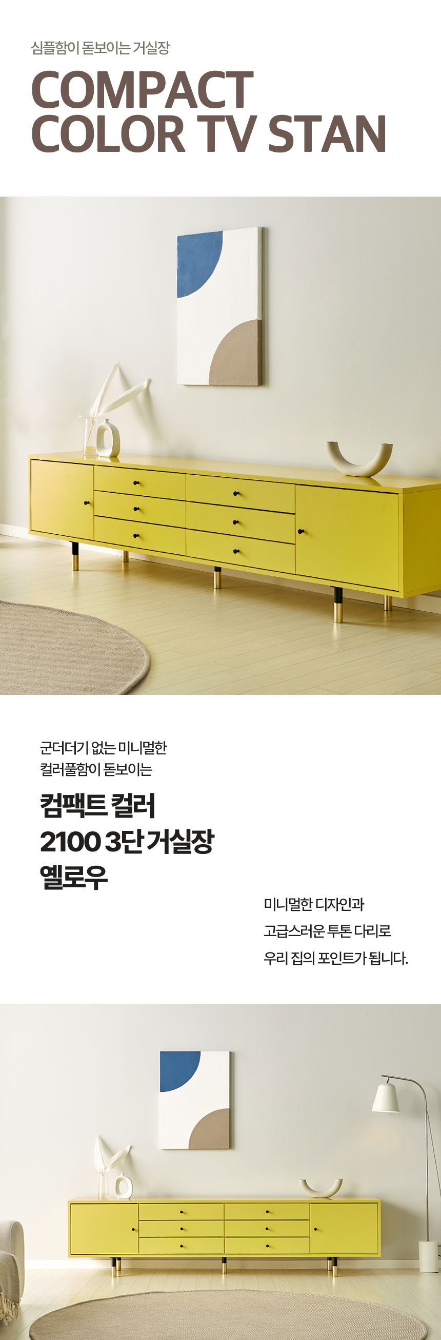 마홀앤 컴팩트 컬러 2100 3단 높은 거실장 옐로우