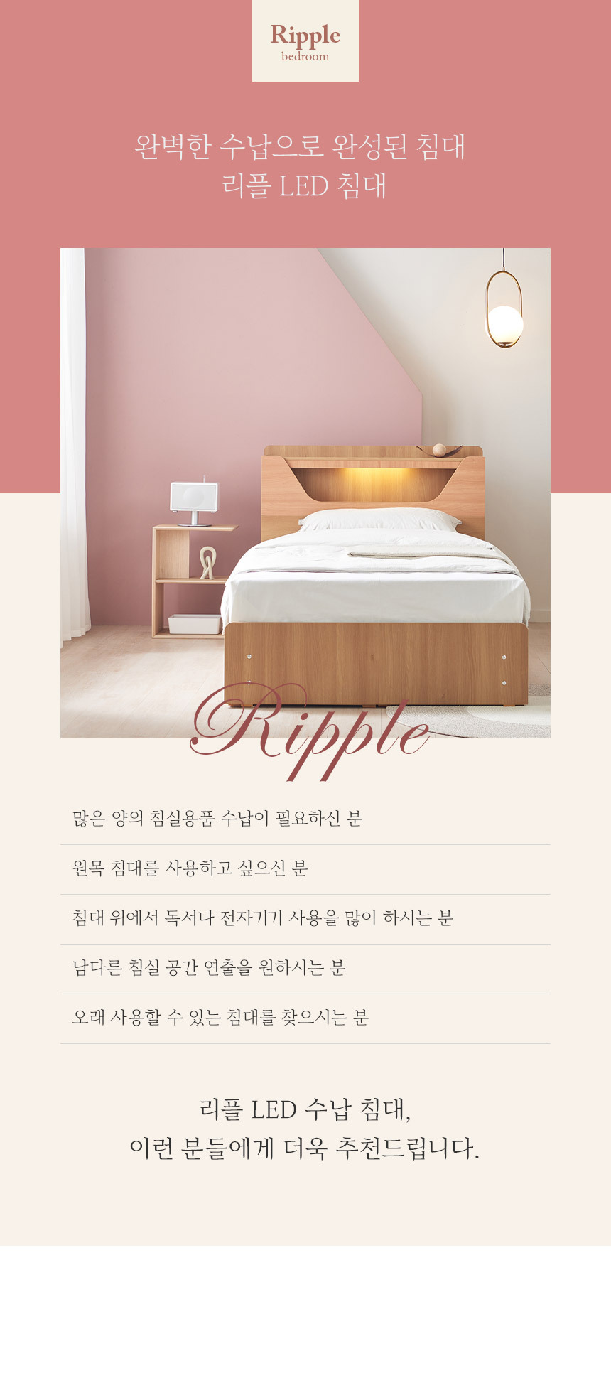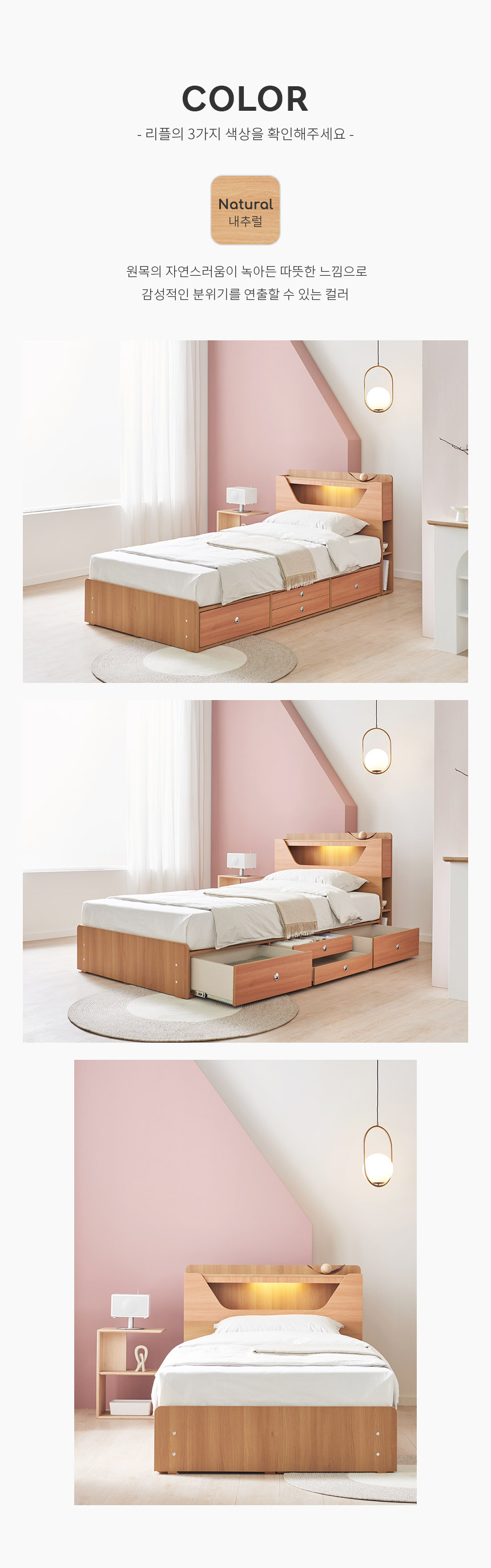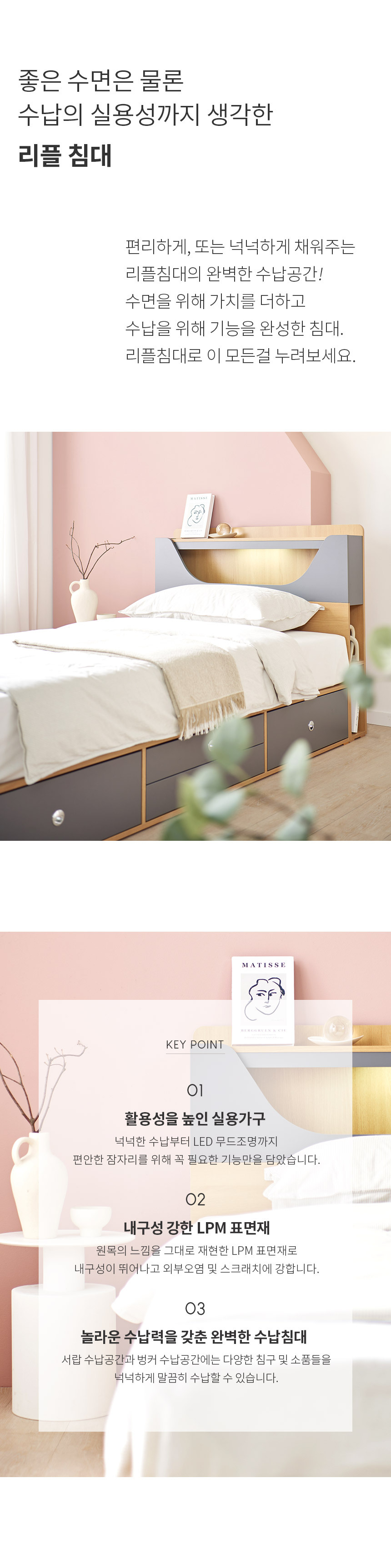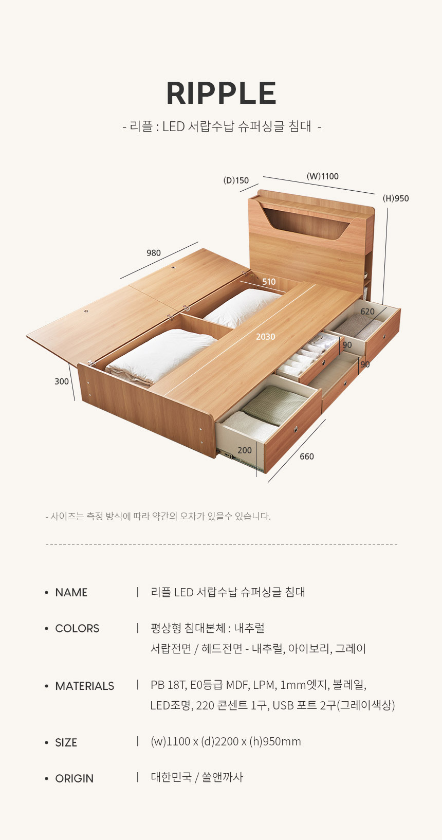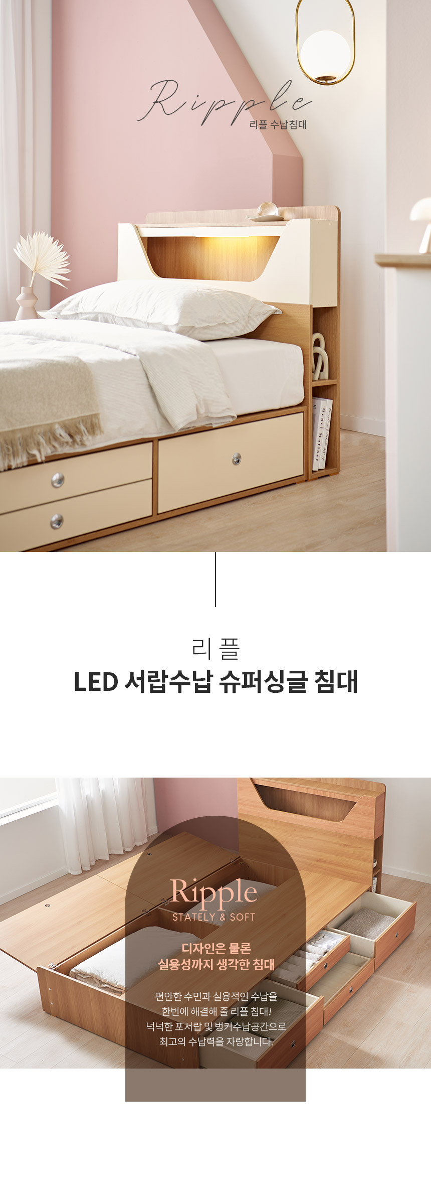 쏠앤까사 리플 LED 서랍 수납 침대 프레임 SS