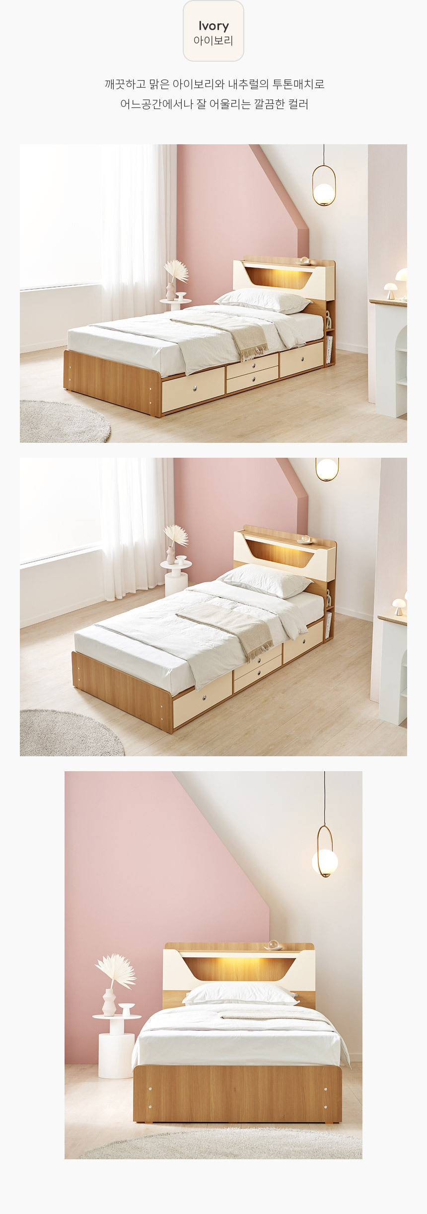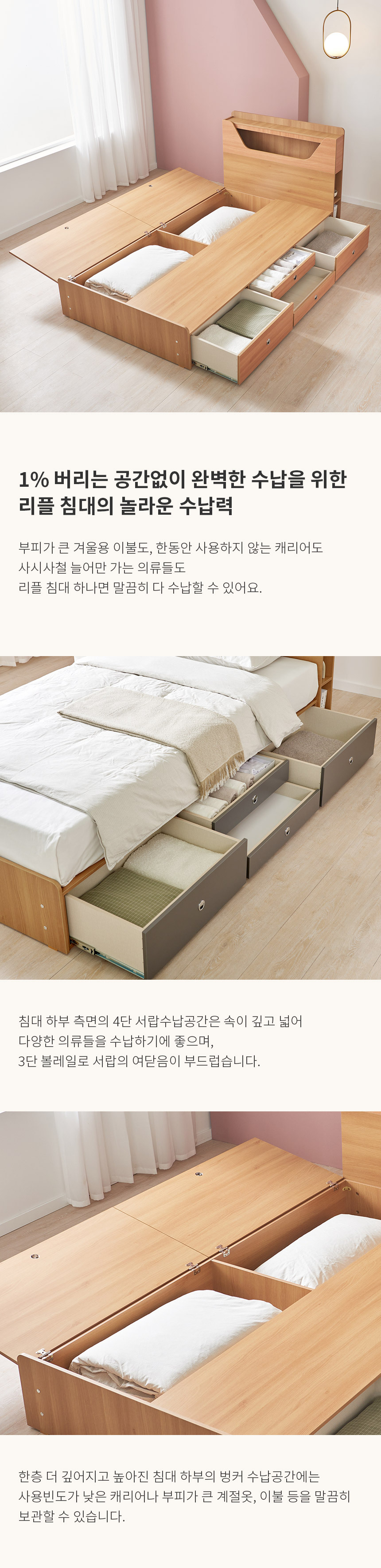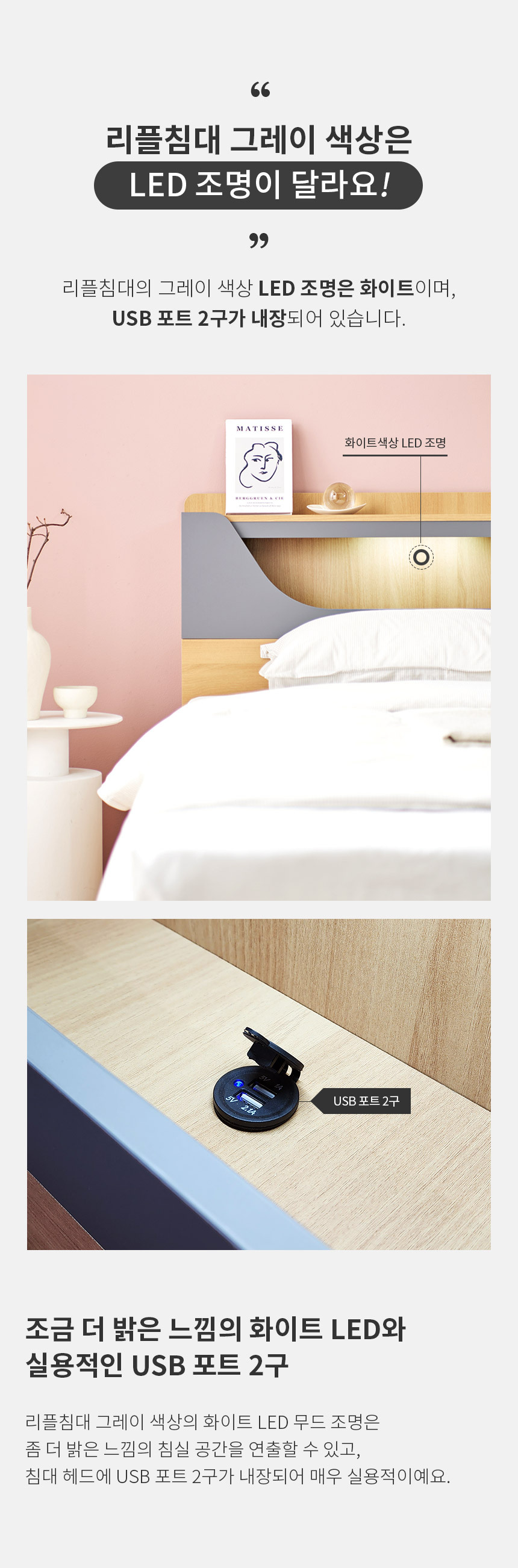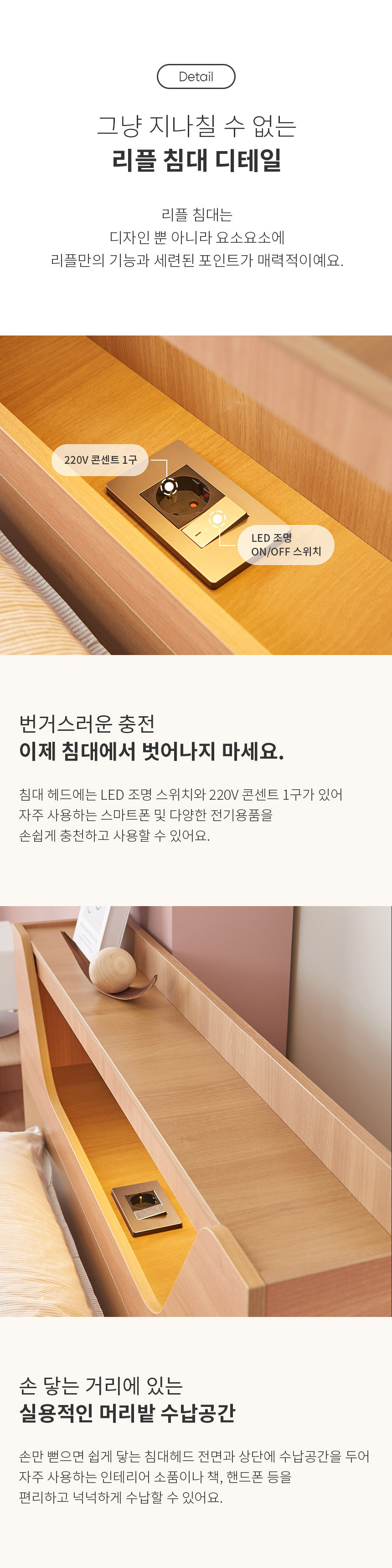 쏠앤까사 리플 LED 서랍 수납 침대 프레임 SS