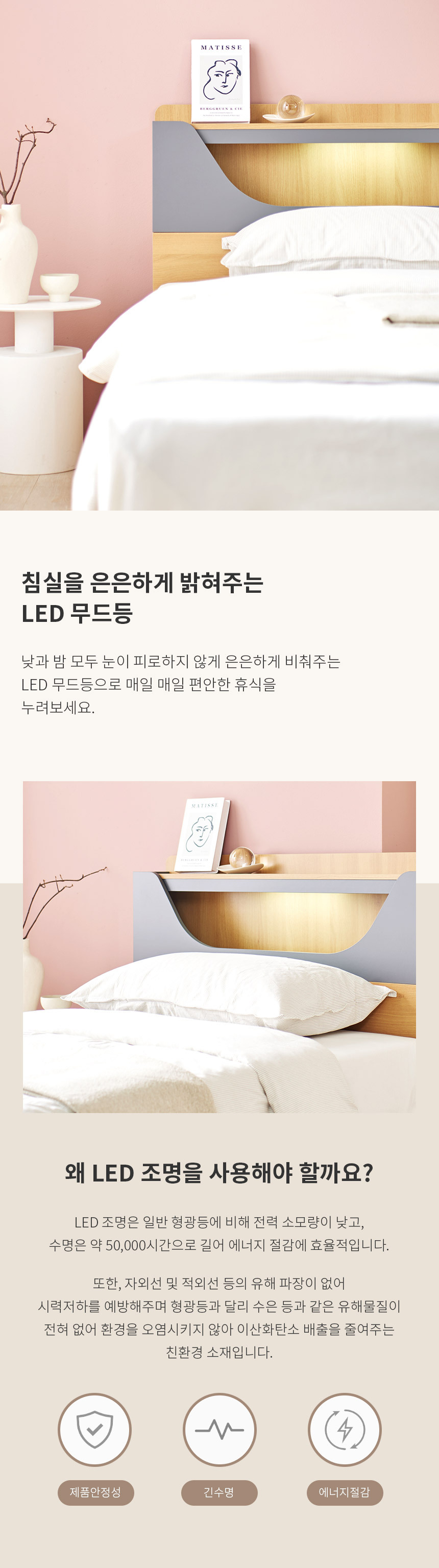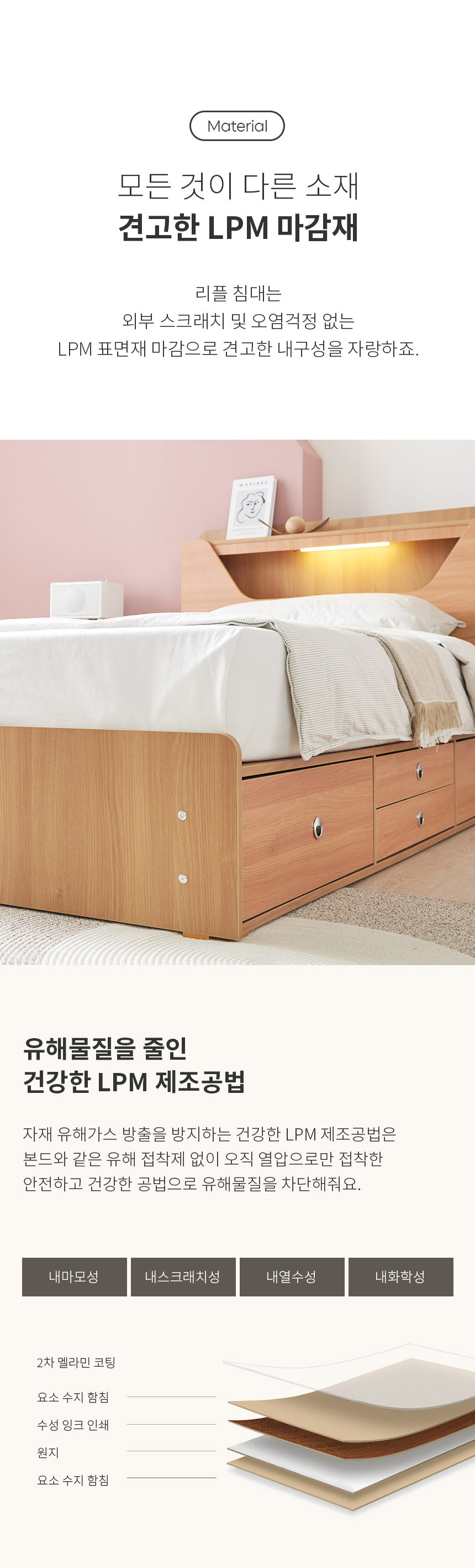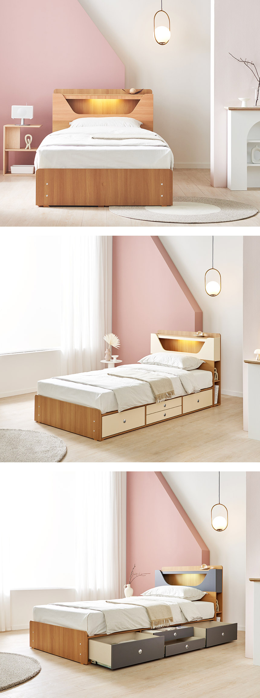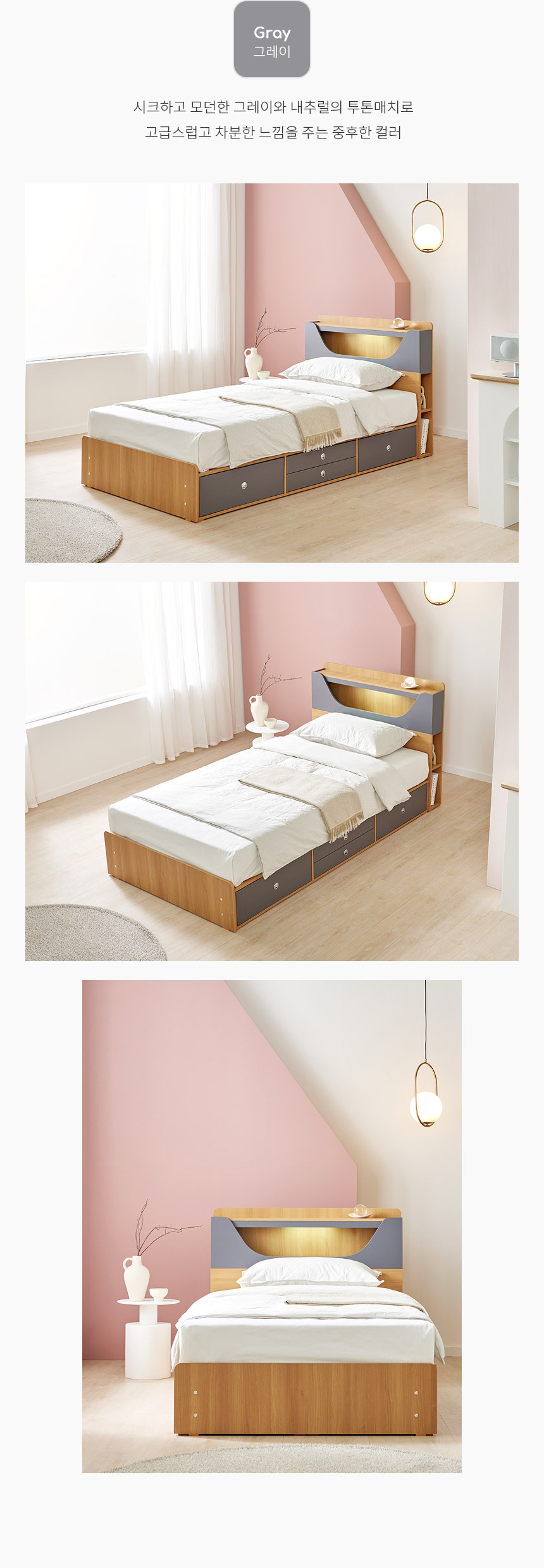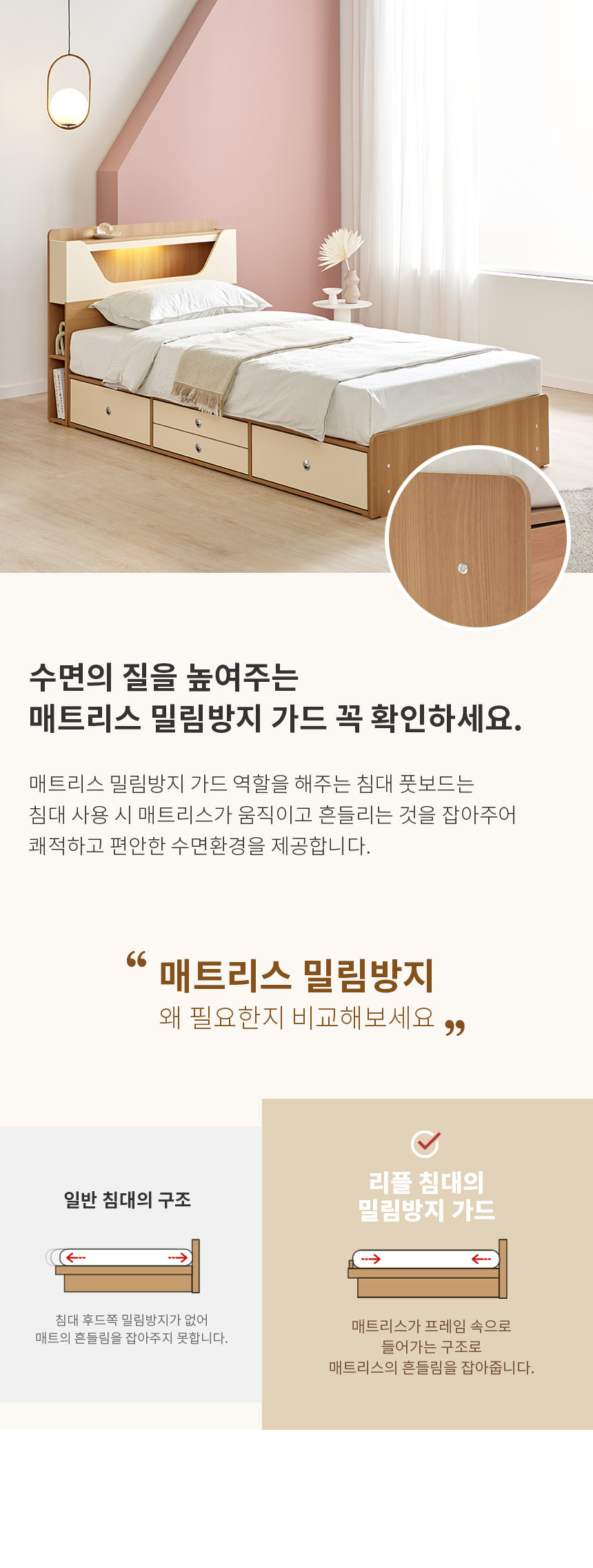 쏠앤까사 리플 LED 서랍 수납 침대 프레임 SS