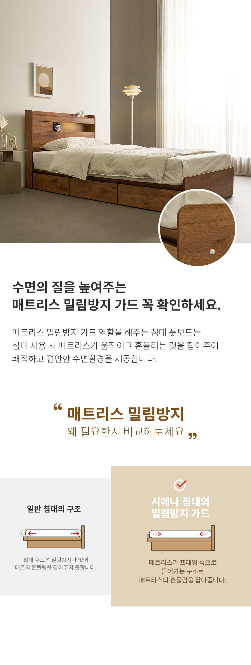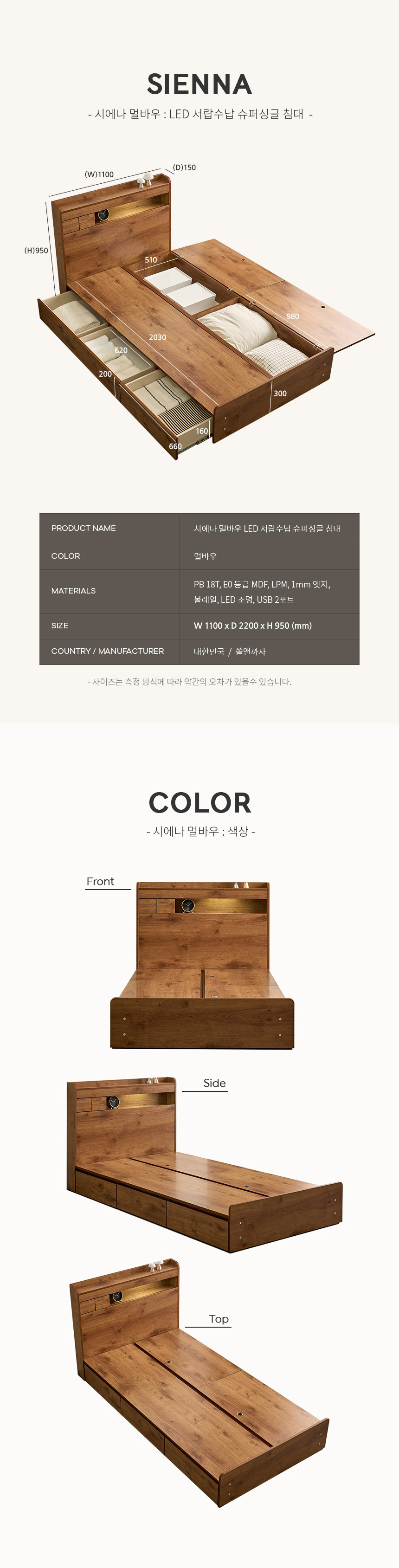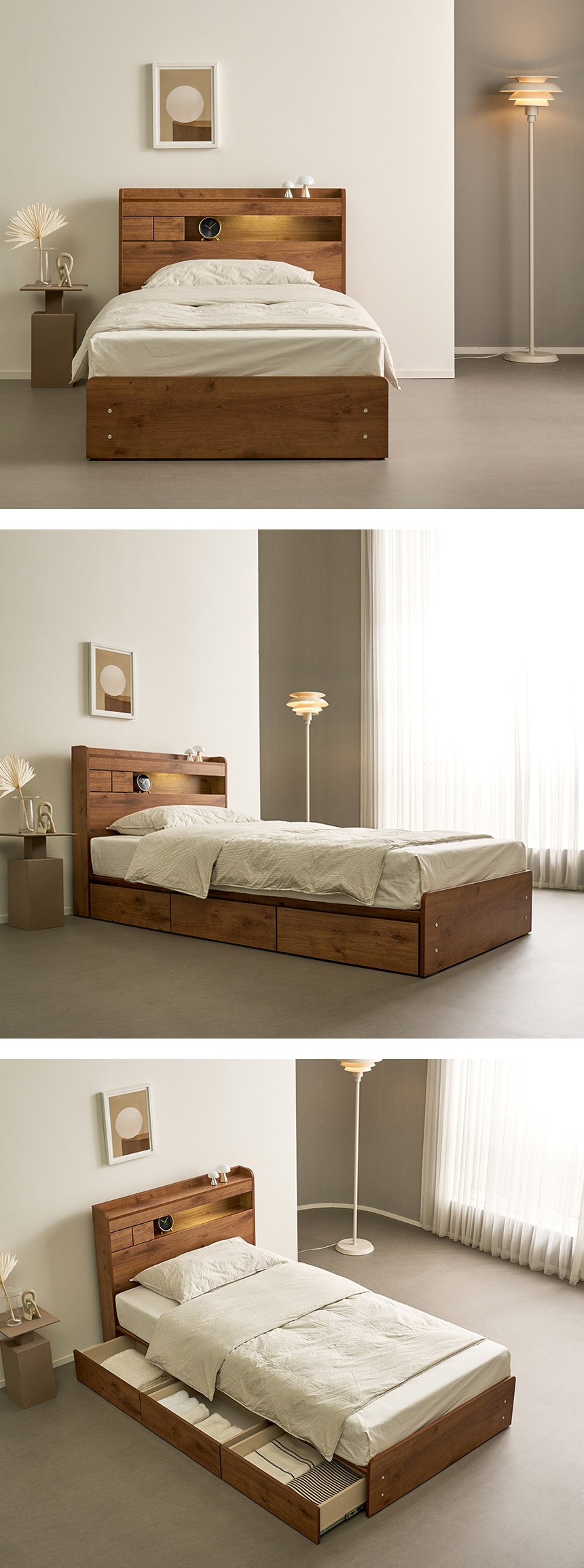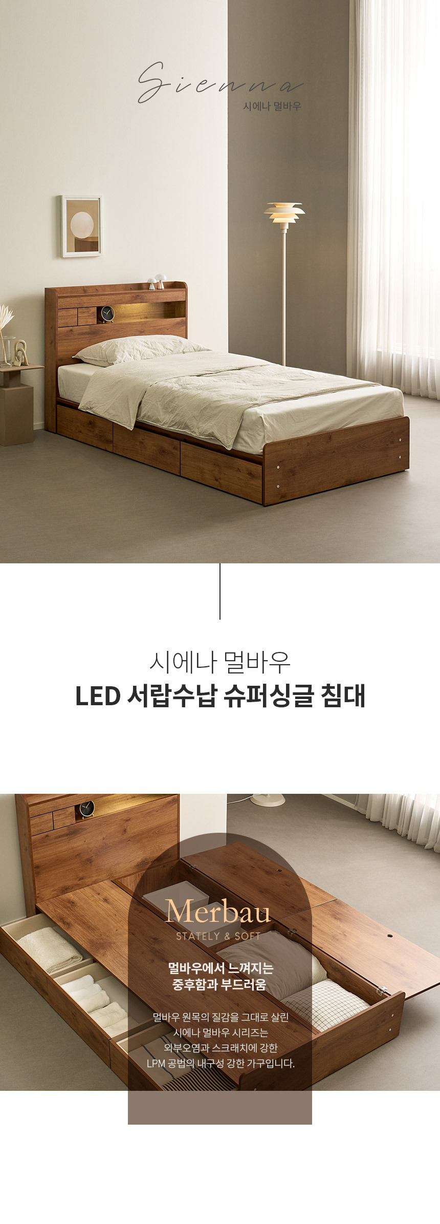 쏠앤까사 시에나멀바우 LED 서랍수납 슈퍼싱글 침대