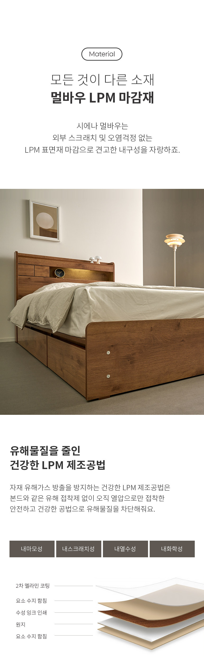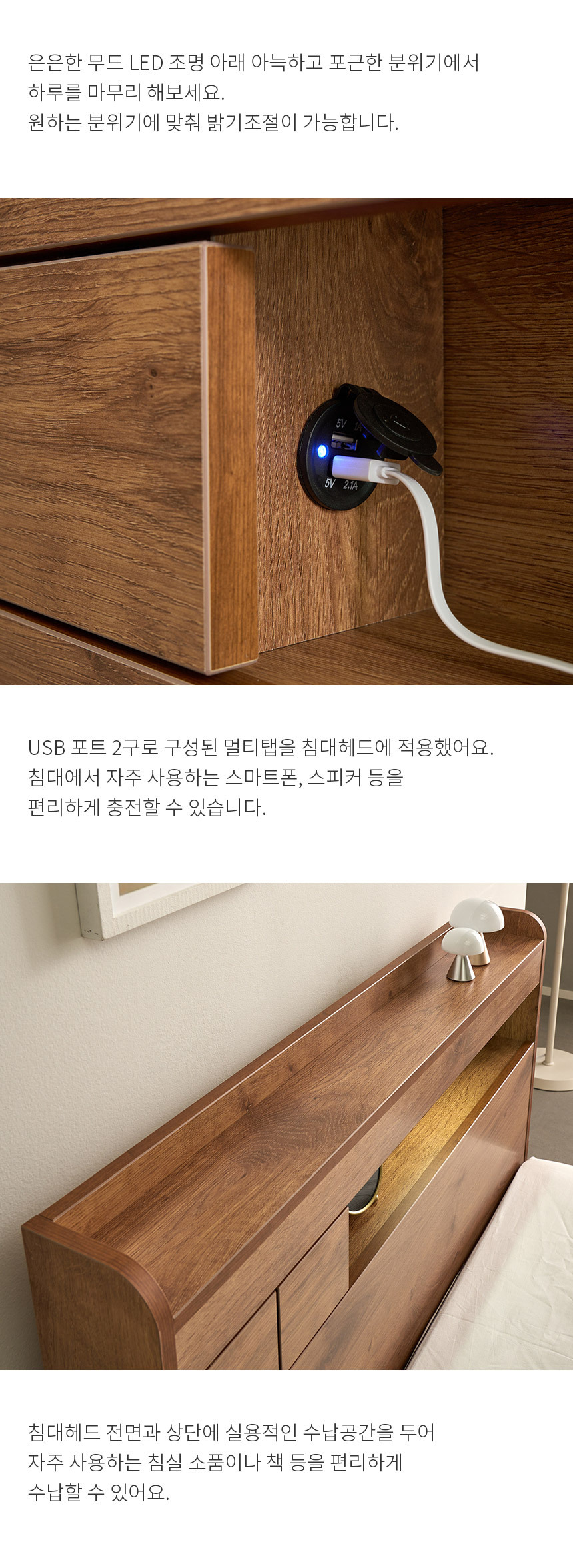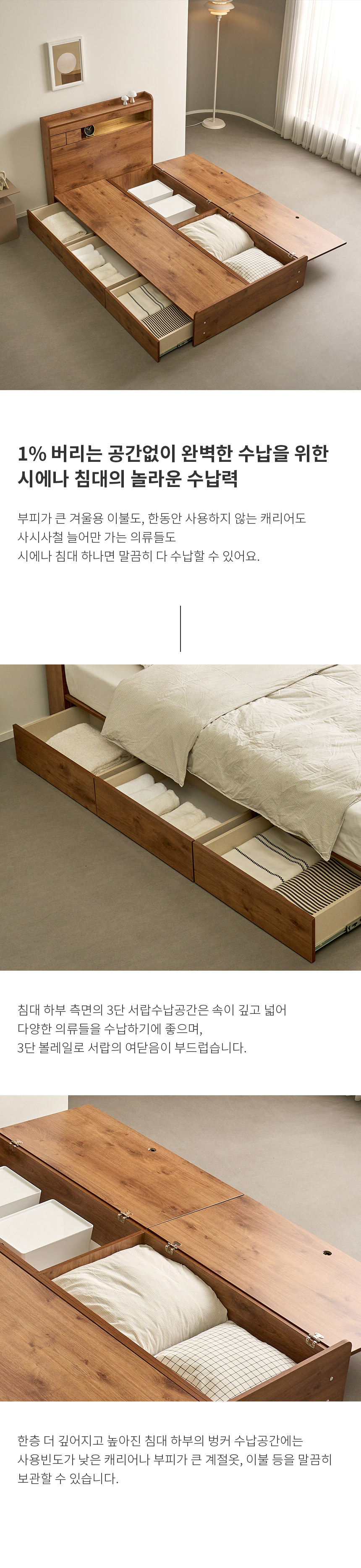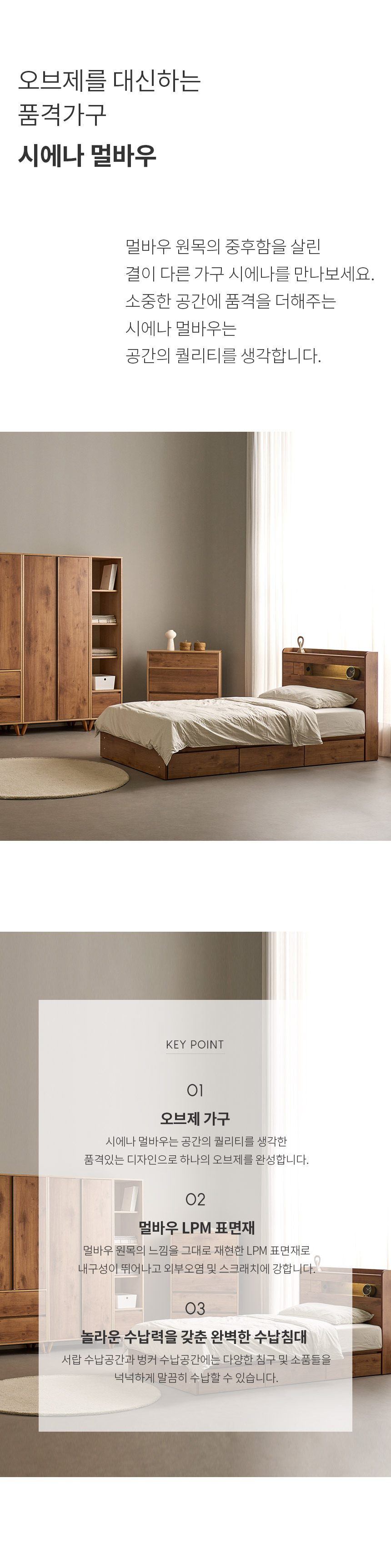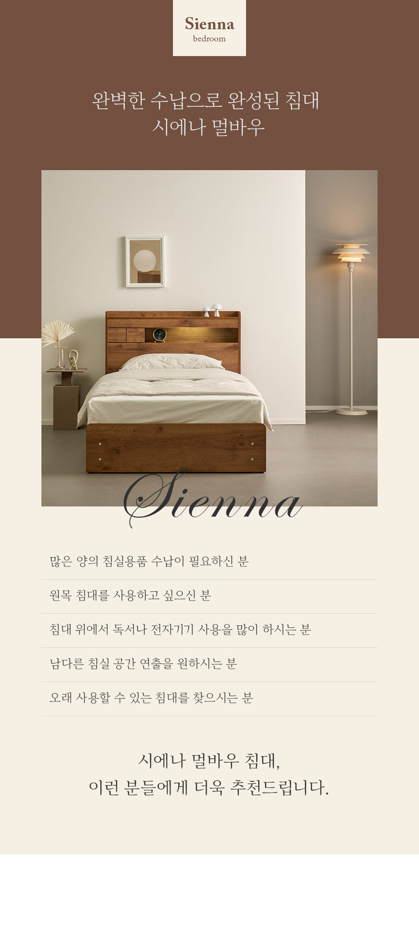 쏠앤까사 시에나멀바우 LED 서랍수납 슈퍼싱글 침대