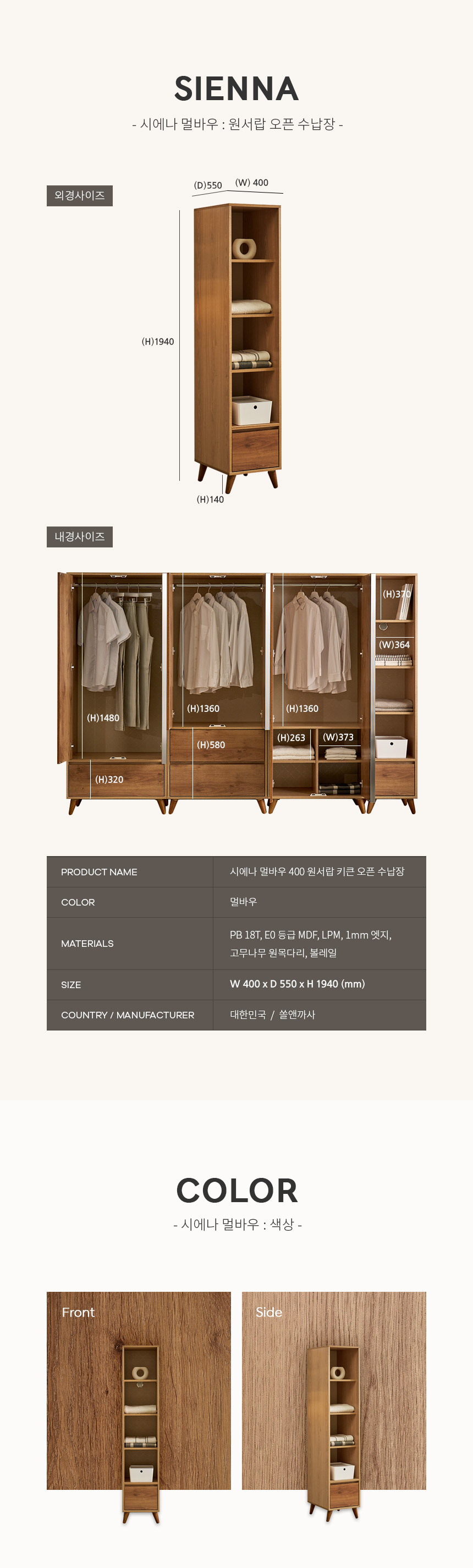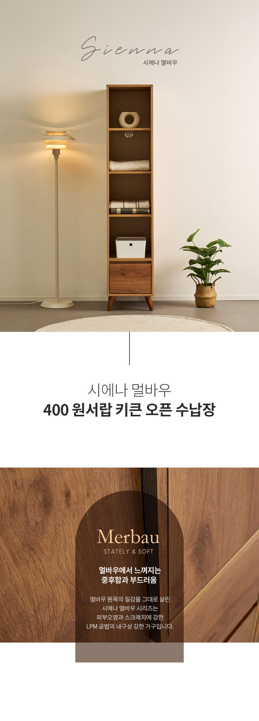 쏠앤까사 시에나멀바우 400 틈새 오픈수납장