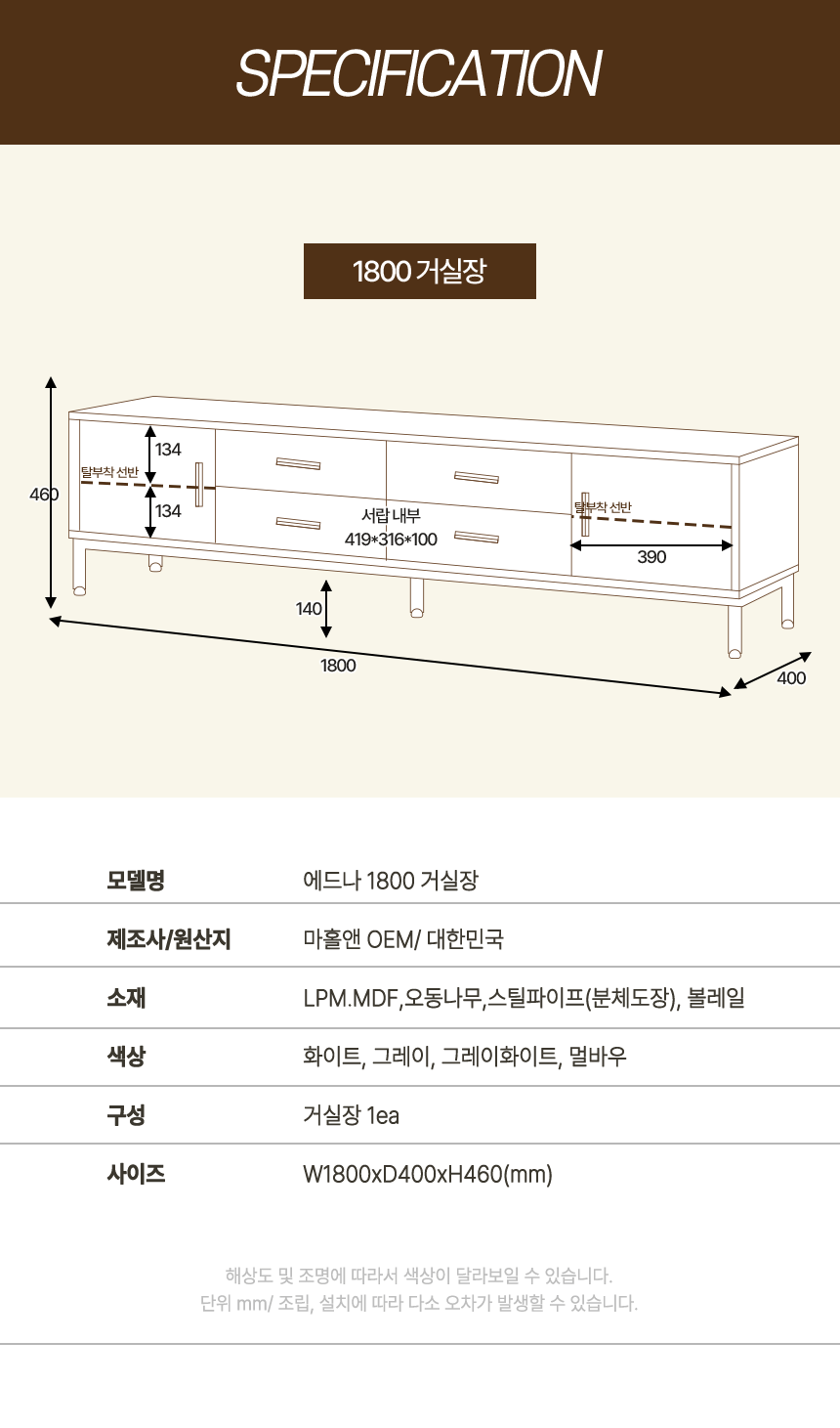 마홀앤 애드나 1800 2단 거실장