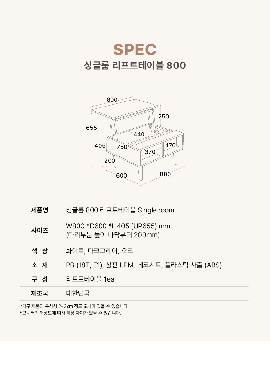 마홀앤 싱글룸 800 리프트업 테이블