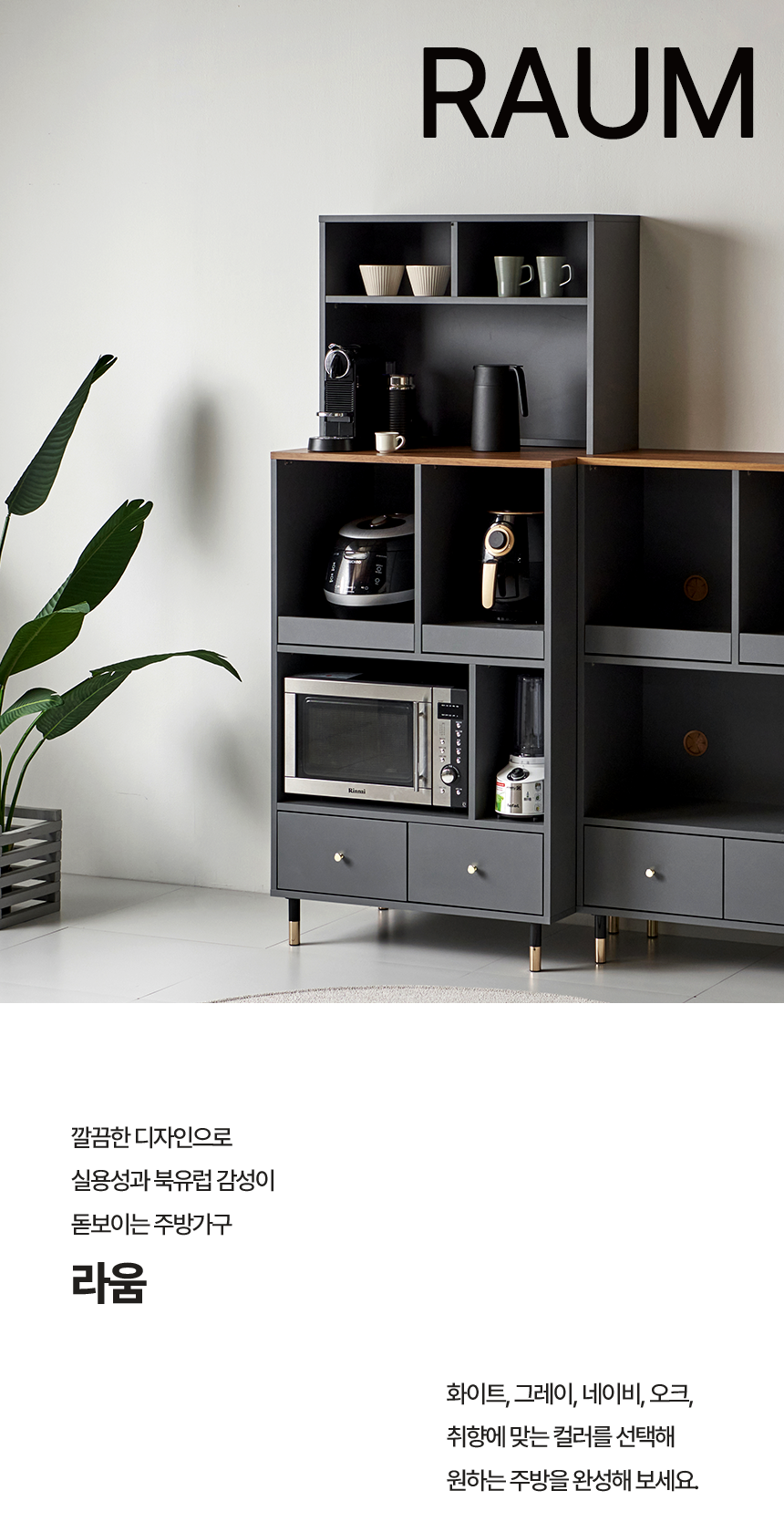 마홀앤 라움 광파형 수납장 전자렌지대+상부장 세트