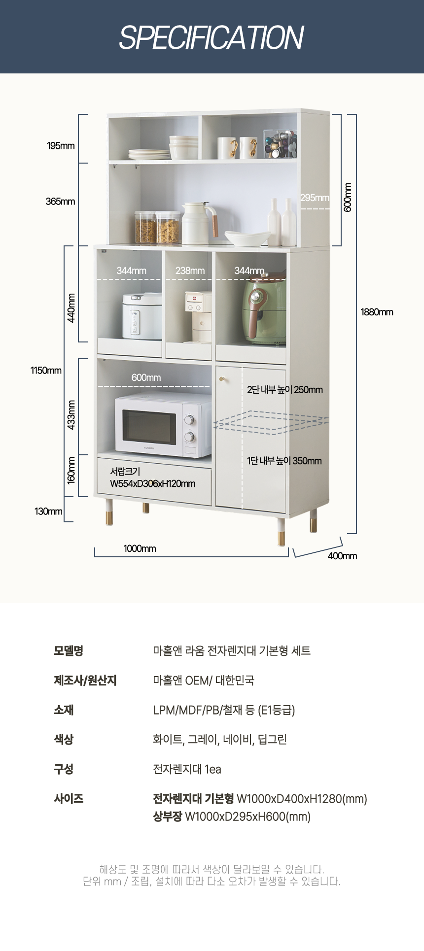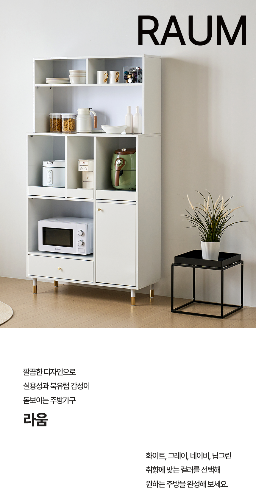 마홀앤 라움 기본형 1000 만능 수납장 전자렌지대+상부장 세트