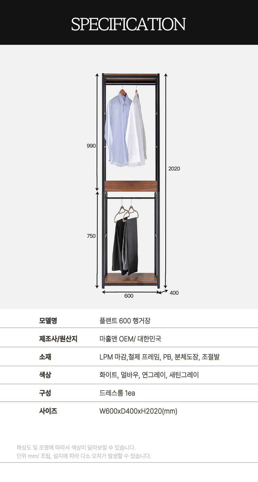 마홀앤 플랜트 시스템 드레스룸 수납장 600 행거형