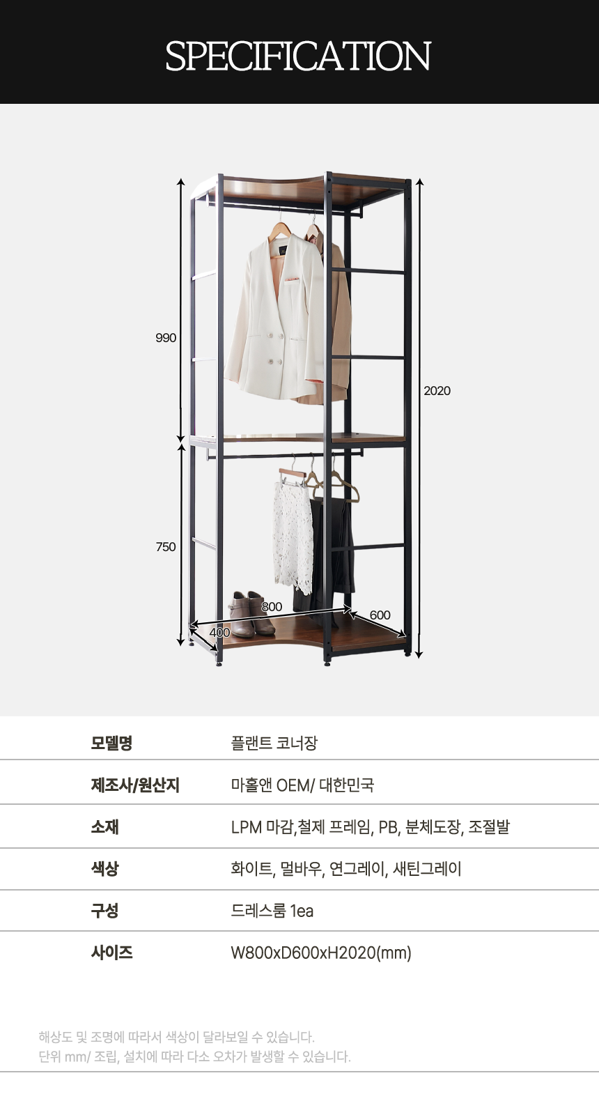 마홀앤 플랜트 시스템 드레스룸 수납장 600 행거코너형