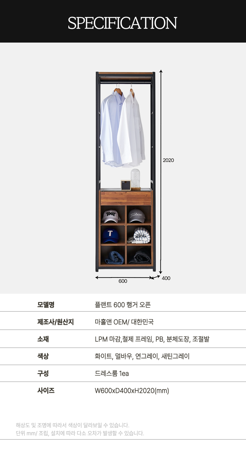 마홀앤 플랜트 시스템 드레스룸 수납장 600 행거오픈형