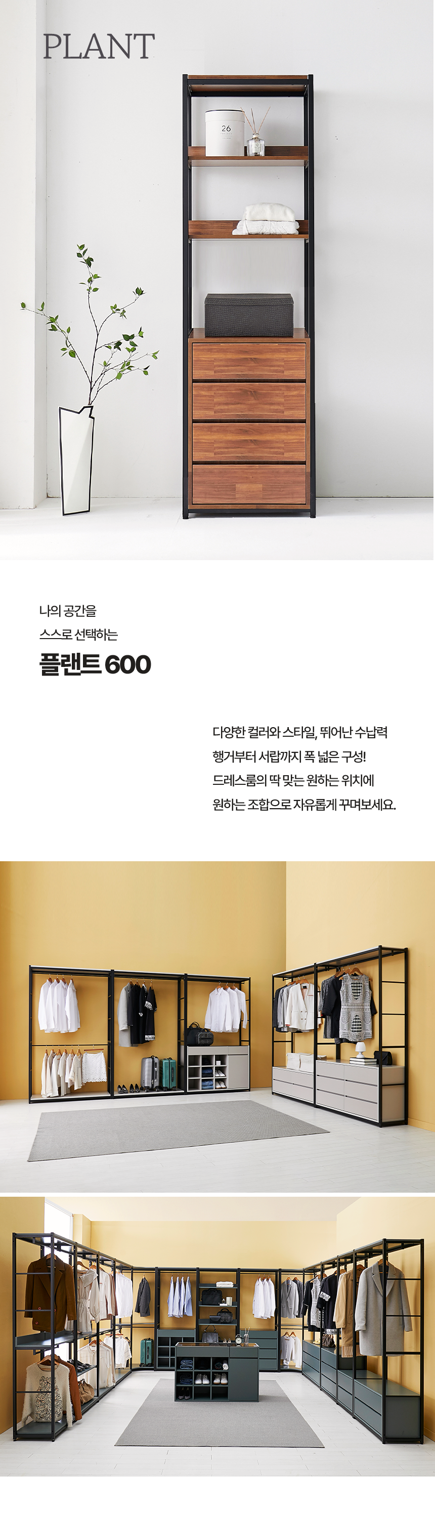 마홀앤 플랜트 시스템 드레스룸 수납장 600 행거4단서랍형