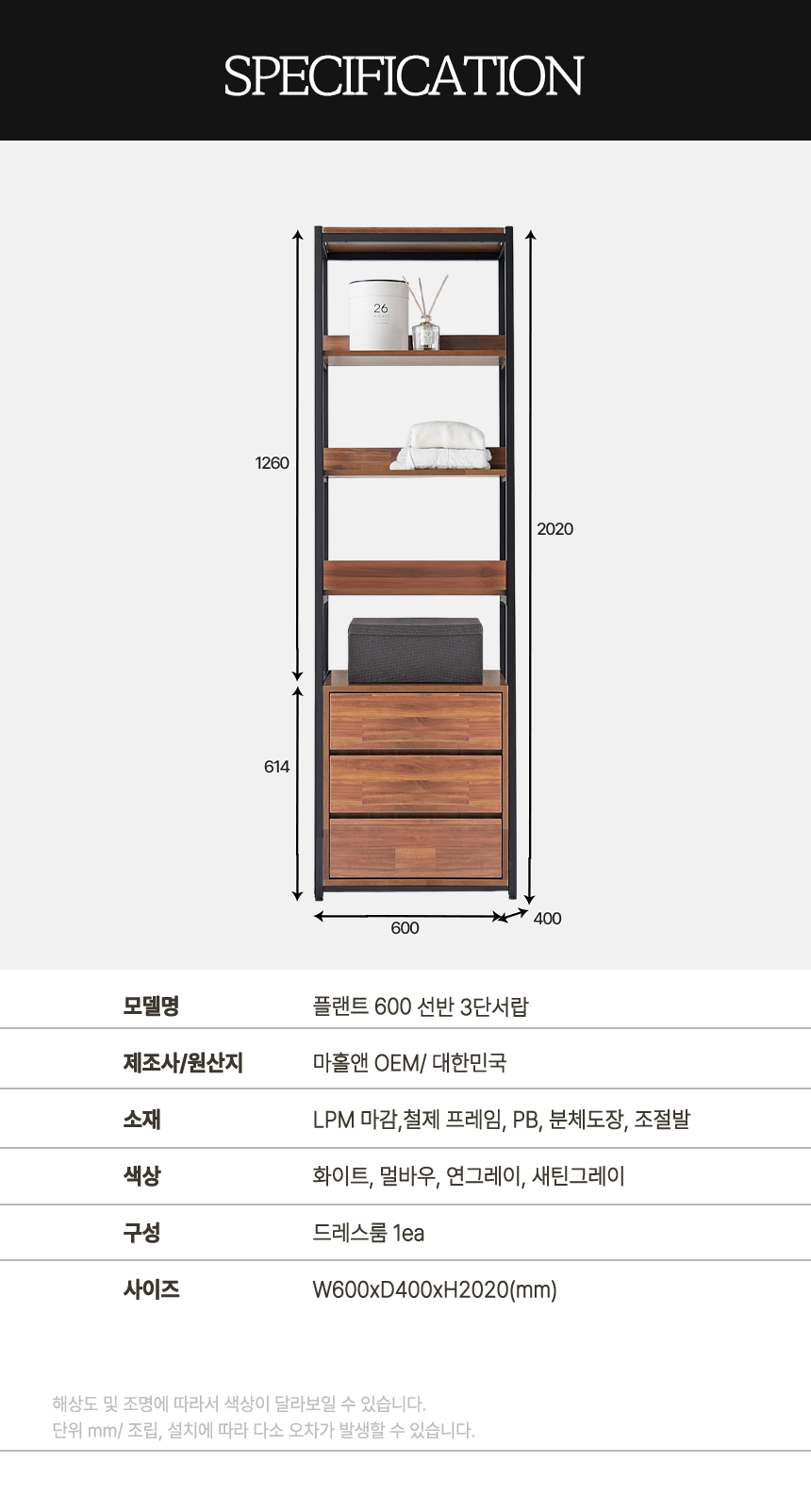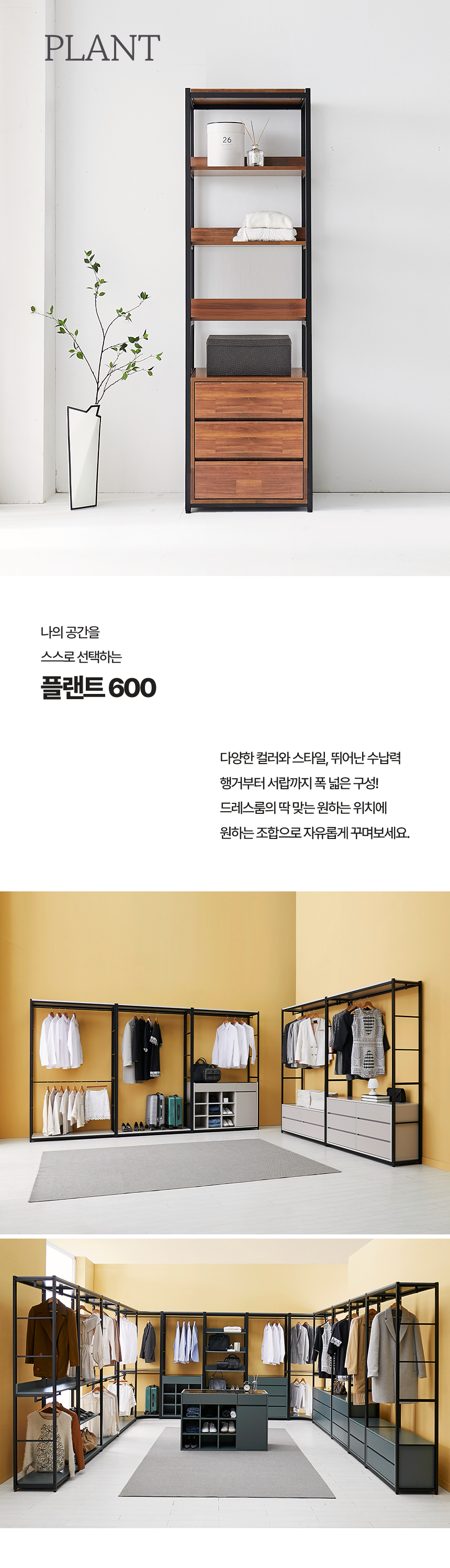 마홀앤 플랜트 시스템 드레스룸 수납장 600 선반3단서랍형
