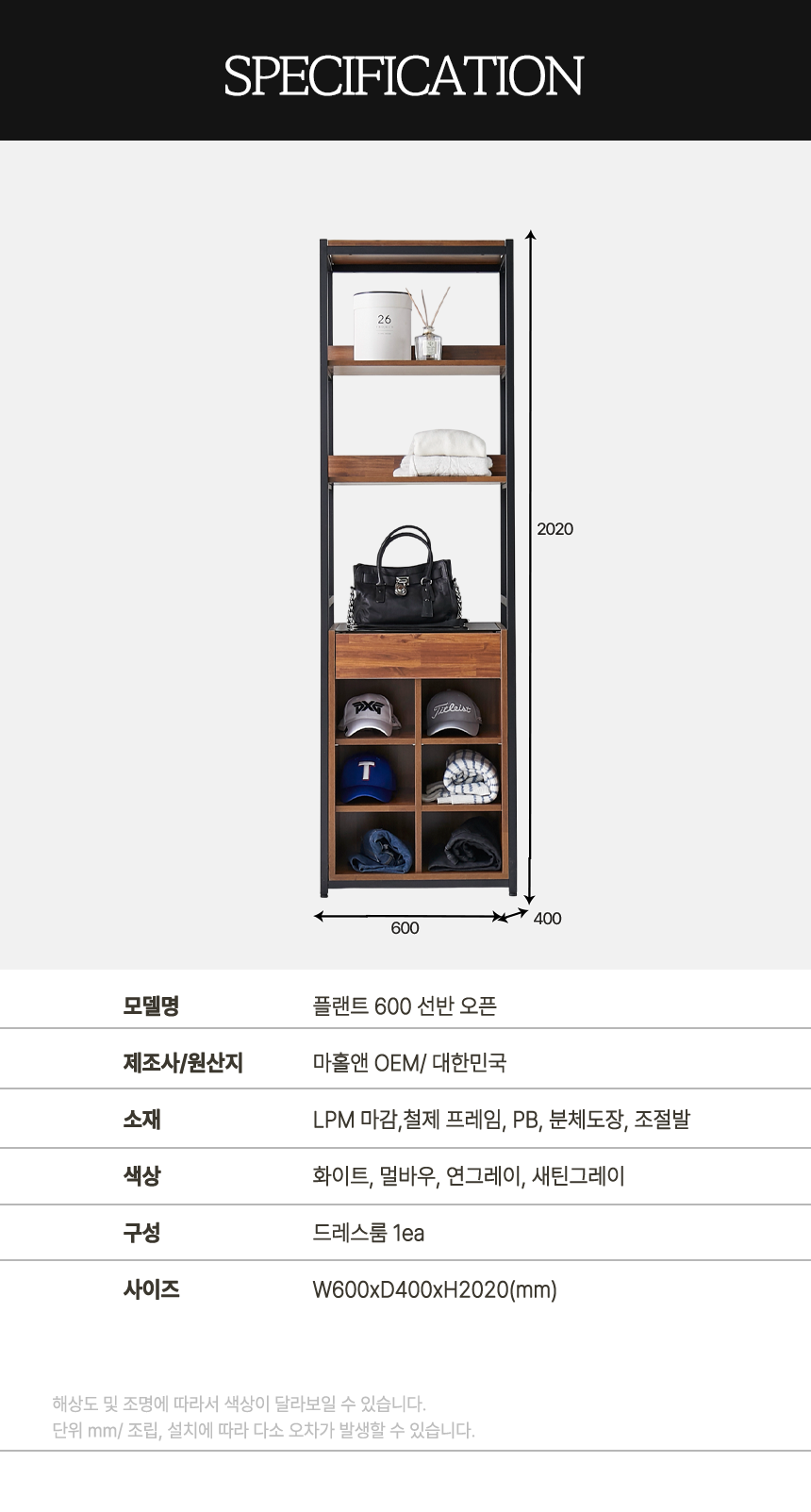마홀앤 플랜트 시스템 드레스룸 수납장 600 선반오픈형