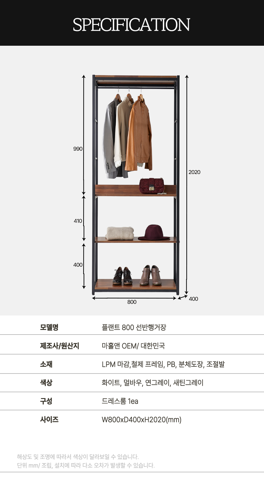 마홀앤 플랜트 시스템 드레스룸 수납장 800 행거선반형