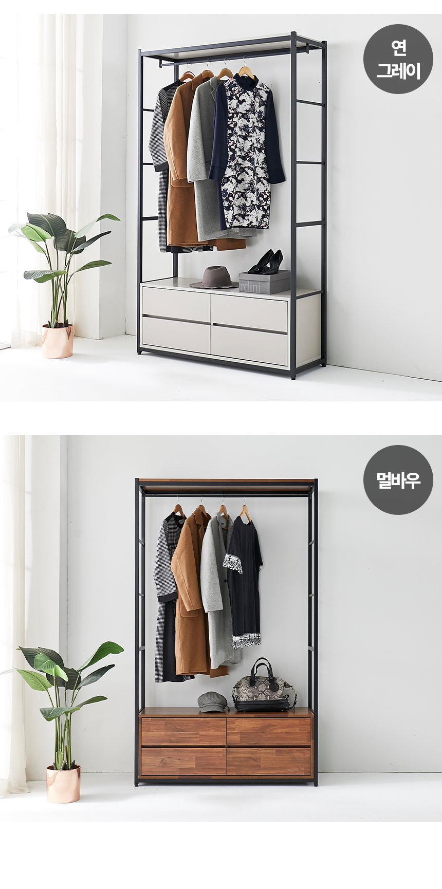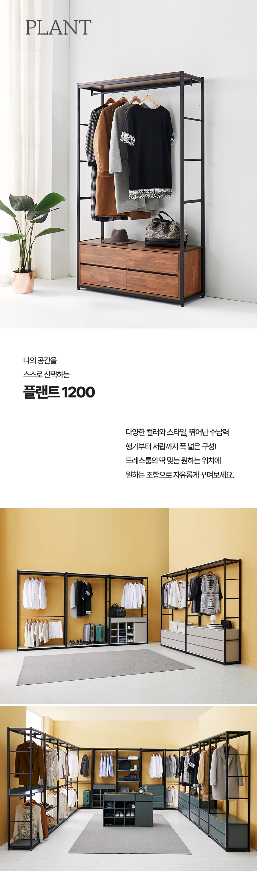 마홀앤 플랜트 시스템 드레스룸 수납장 1200 행거형 2단서랍
